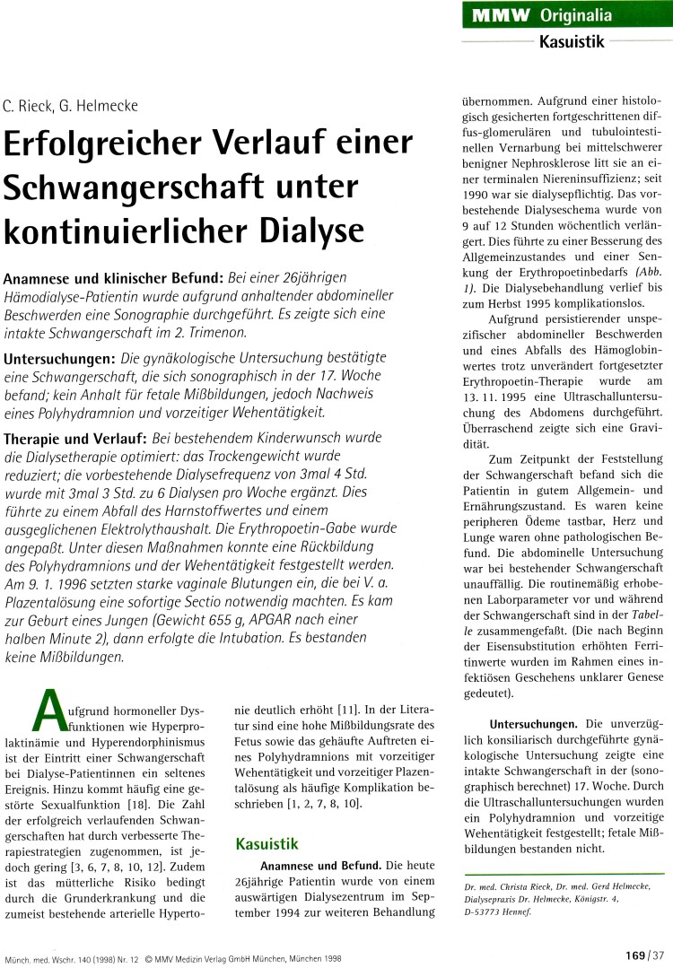 Erfolgreicher Verlauf einer Schwangerschaft unter
